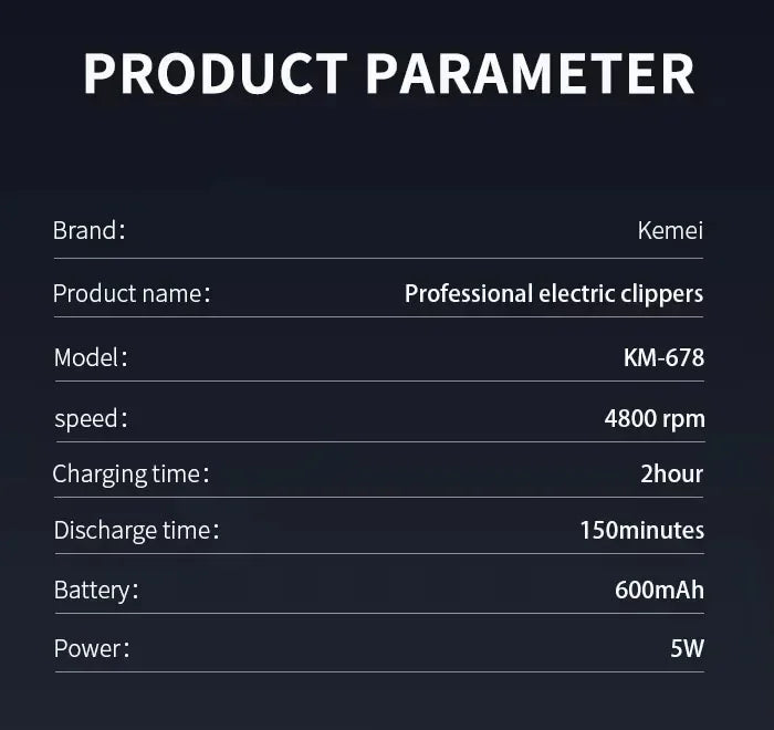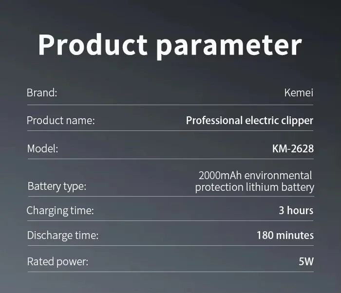 Kemei KM-2628 KM-678 KM-2024 USB Rechargeable Hair Clipper Professional Cordless Men Hair Trimmer Men's Hair Cutting Machine